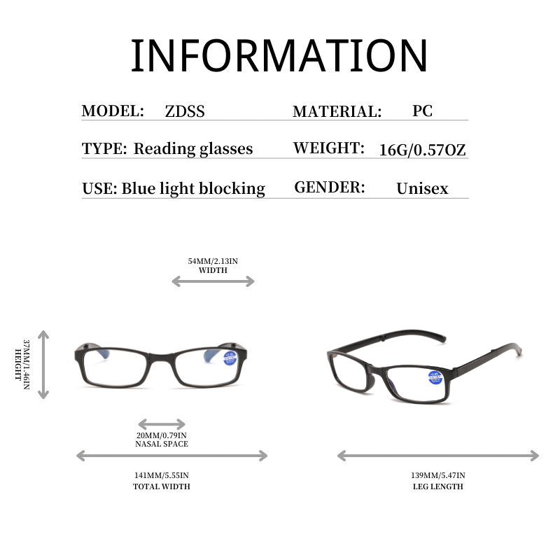ANTI-BLUE LIGHT PORTABLE FOLDING FULL-FRAME READING GLASSES