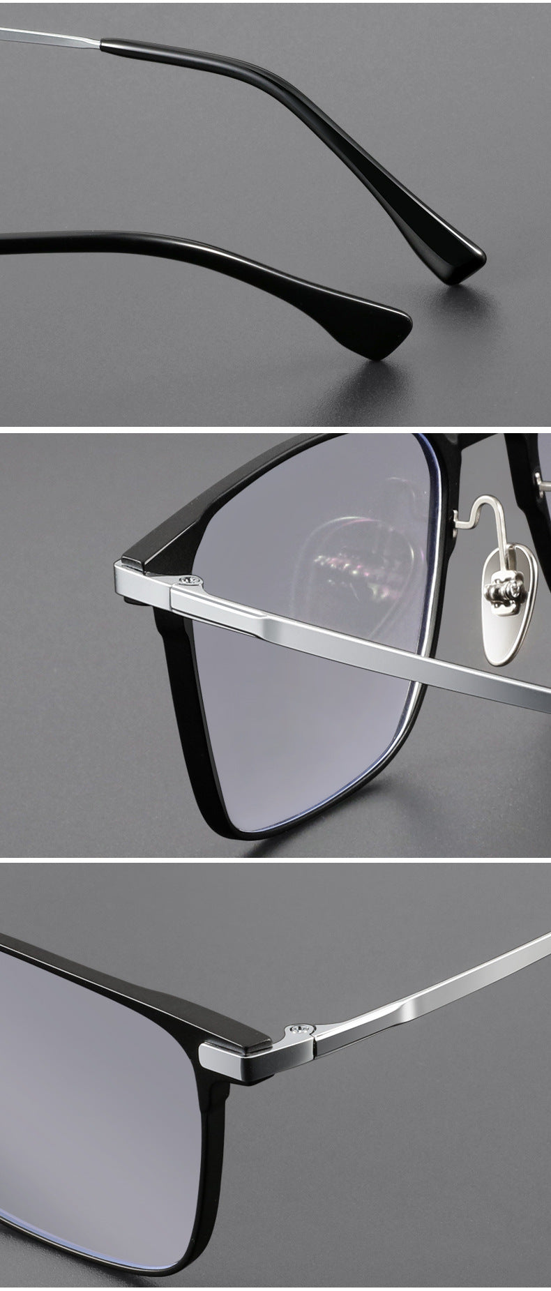 These stylish eyeglasses are made of polished and slender metal material. Featured with fashionable design. It is a good choice for man or women who are looking for a pair of fashionable eyeglasses.