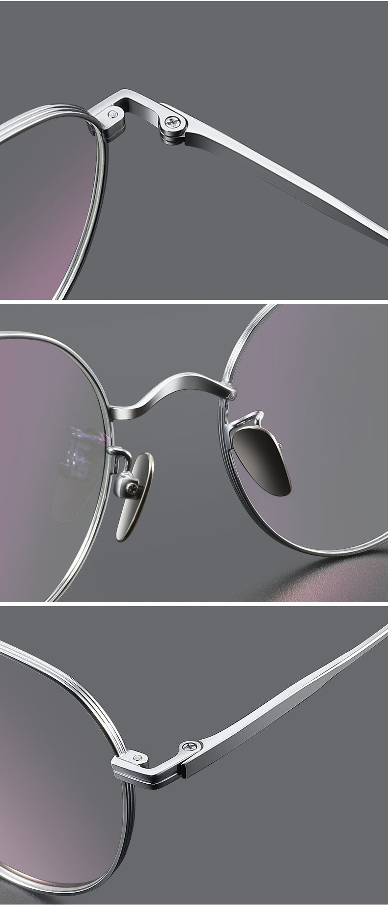 These stylish eyeglasses are made of polished and slender metal material. Featured with fashionable design. It is a good choice for man or women who are looking for a pair of fashionable eyeglasses.